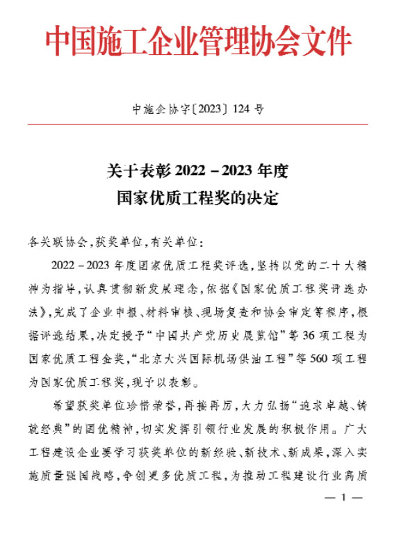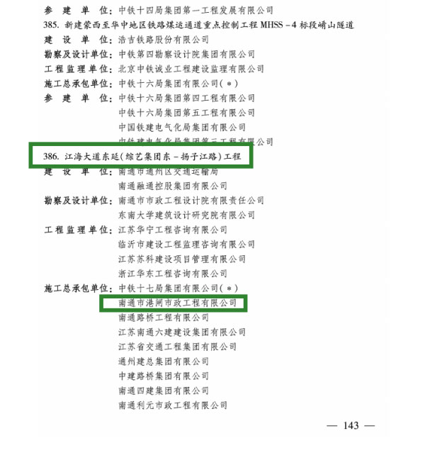 近日,中國施工企業(yè)管理協(xié)會(huì )發(fā)布2022-2023年國家優(yōu)質(zhì)工程獎名單,我公司參建的江海大道東延(綜藝集團東-揚子江路)工程登榜。