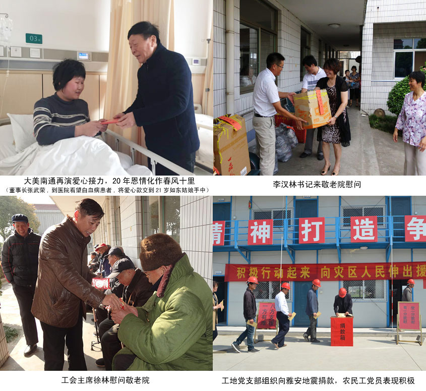 公司成立二十五年以來(lái),從初期連續十年支助二個(gè)孤兒開(kāi)始,先后資助新疆伊犁多名貧困學(xué)生,連續多年看望慰問(wèn)幸福敬老院、秦灶敬老院、唐閘敬老院、市北養老中心的老人,對素不相識的癌癥病人、重危病人、交通事故致殘人員、燒傷燙傷等病人給予醫療費支助,向四川汶川、雅安、青海玉樹(shù)、云南魯甸地震震區和鹽城6.23特大龍卷風(fēng)等災區積極捐款,樂(lè )施港閘市政人的援助之手,為使愛(ài)心傳承更久遠,施援更高效,公司已分別在南通市慈善總會(huì )、港閘區慈善總會(huì )冠名了各100萬(wàn)元的愛(ài)心基金,為特困人群雪中送炭,讓愛(ài)的種子、好人文化在港閘市政薪火相傳。